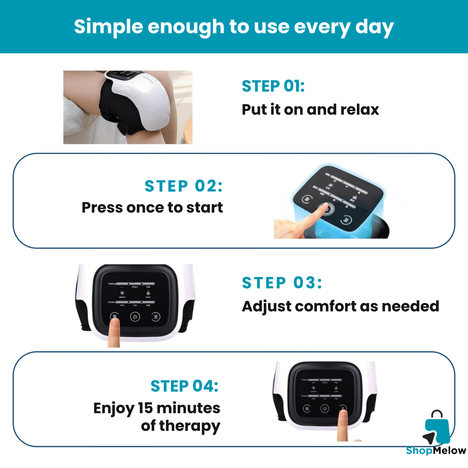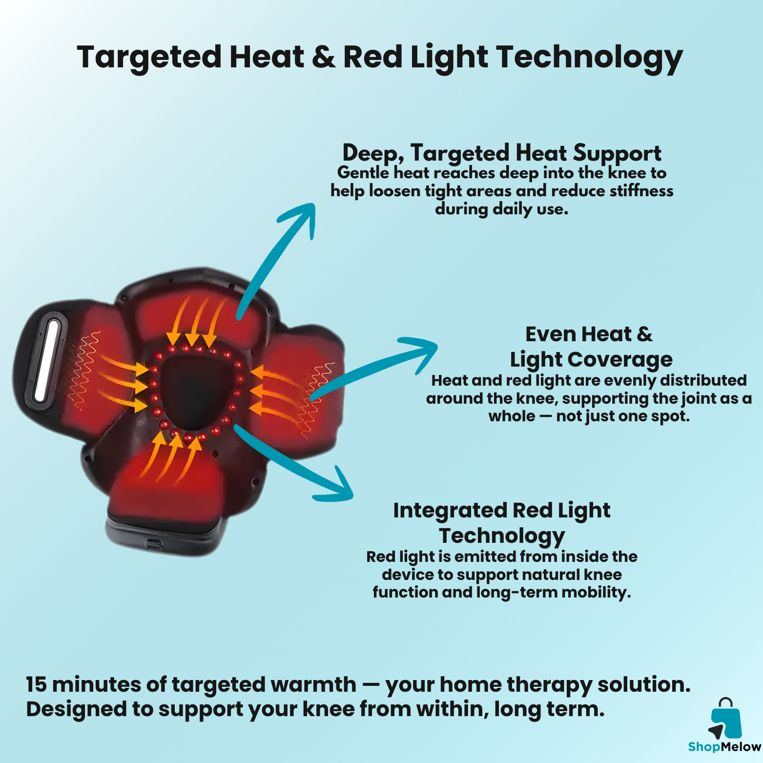 It combines targeted heat, red light technology, and vibration to work from within the knee area — supporting natural circulation, relaxing deep joint structures, and easing stiffness over time.